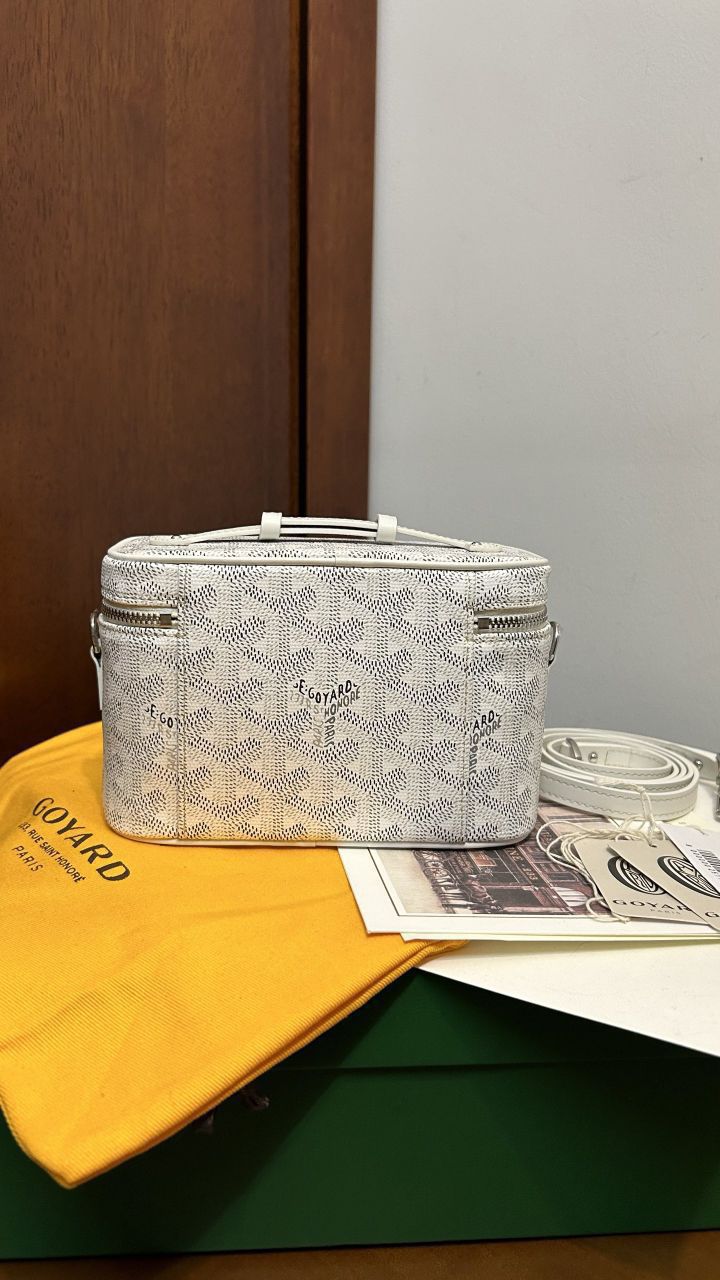 • The GOYARD MUSE Mini Cosmetic Bag continues the design elements of the MUSE Small Cosmetic Bag and is presented in a mini version. It is elegant and practical, and safely stores daily necessities. The MUSE mini bag is equipped with removable leather shoulder straps that can be carried, shoulder-backed or cross-slung.
