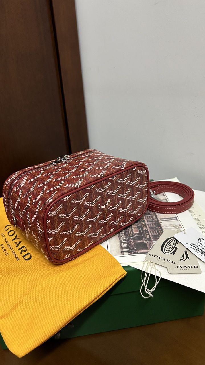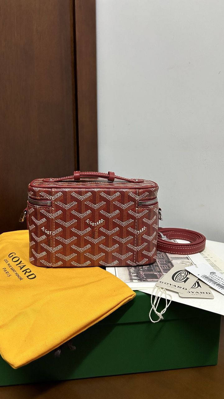 • The GOYARD MUSE Mini Cosmetic Bag continues the design elements of the MUSE Small Cosmetic Bag and is presented in a mini version. It is elegant and practical, and safely stores daily necessities. The MUSE mini bag is equipped with removable leather shoulder straps that can be carried, shoulder-backed or cross-slung.