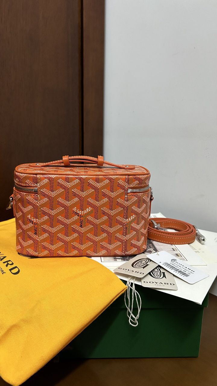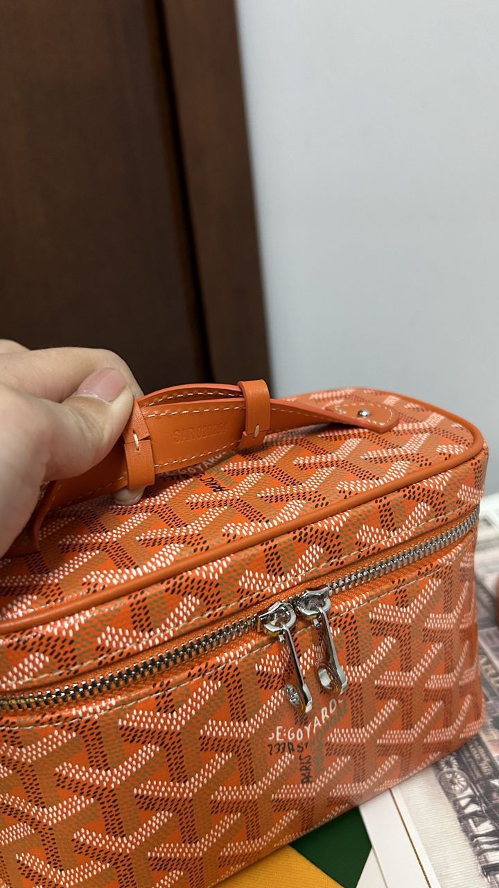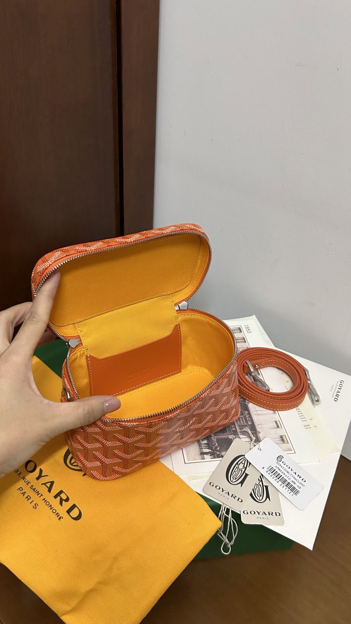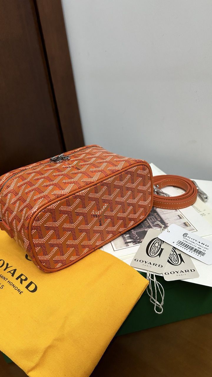 • The GOYARD MUSE Mini Cosmetic Bag continues the design elements of the MUSE Small Cosmetic Bag and is presented in a mini version. It is elegant and practical, and safely stores daily necessities. The MUSE mini bag is equipped with removable leather shoulder straps that can be carried, shoulder-backed or cross-slung.