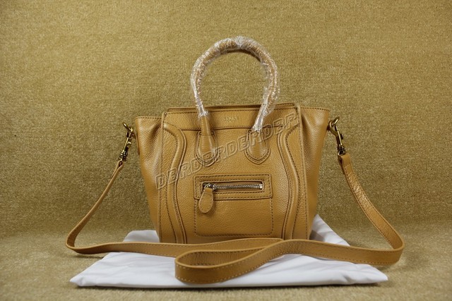 Celine Micro Luggage Phantom Square ToteCaramel brown leather